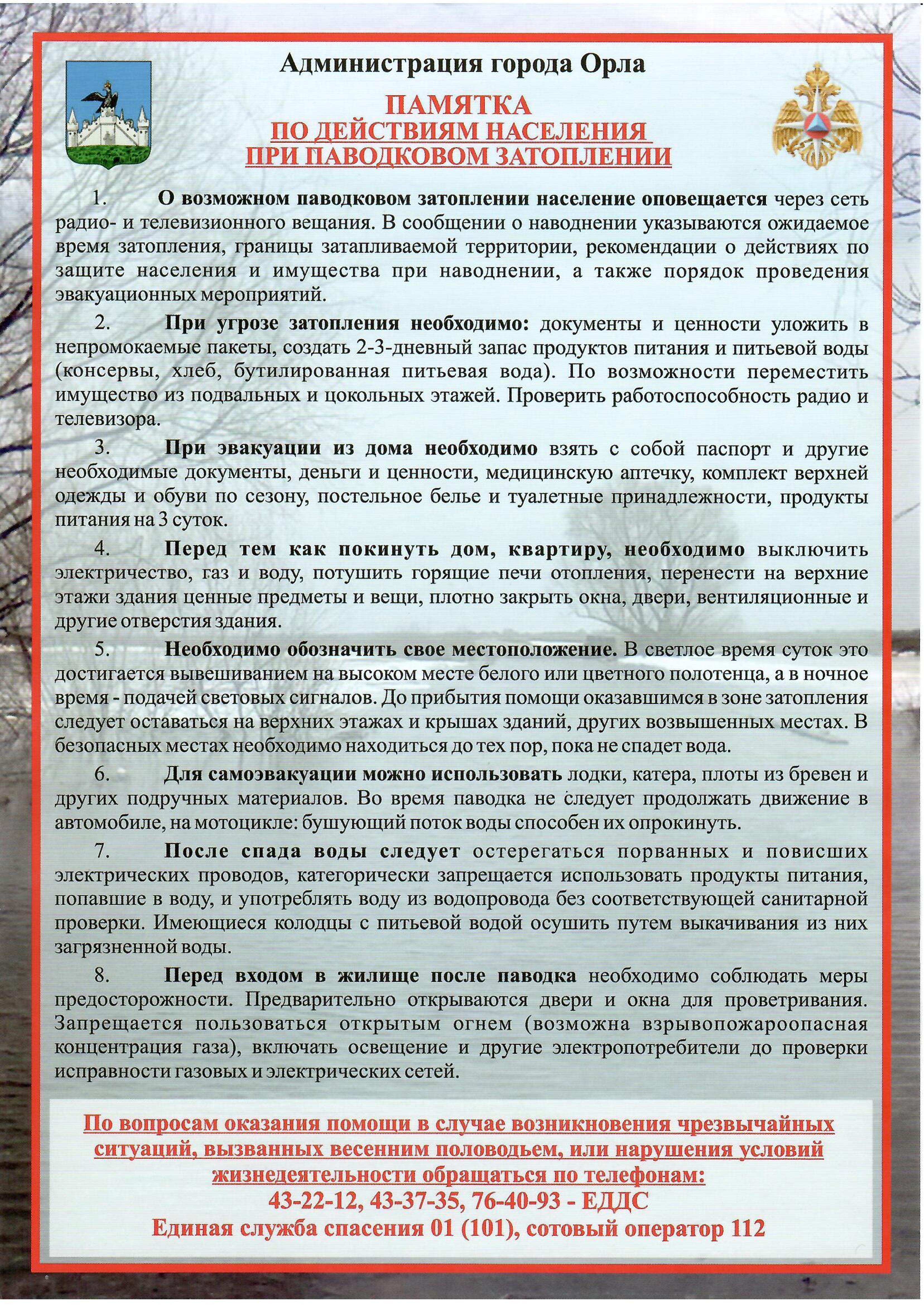 Получив сообщение от представителей властей или правоохранительных органов о начале эвакуации, соблюдайте спокойствие и четко выполняйте их команды.